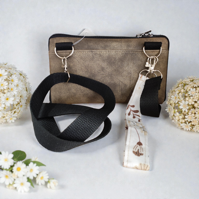 - 2 À la main : Fixer la dragonne pour transformer votre portefeuille en une pochette de soirée.